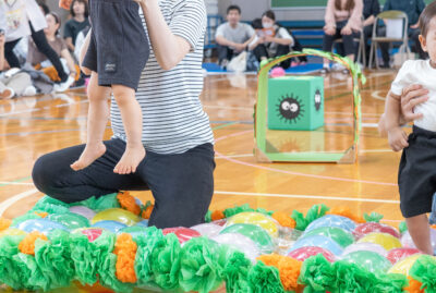富士山も飛び越えてアンパンマンになりきって、バイキンマンたちをやっつけたたんぽぽ組さん。