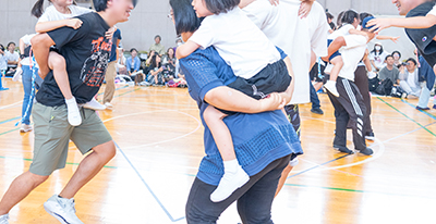 さくら・ひまわり組さんたちは親子競技の騎馬戦も大盛況。