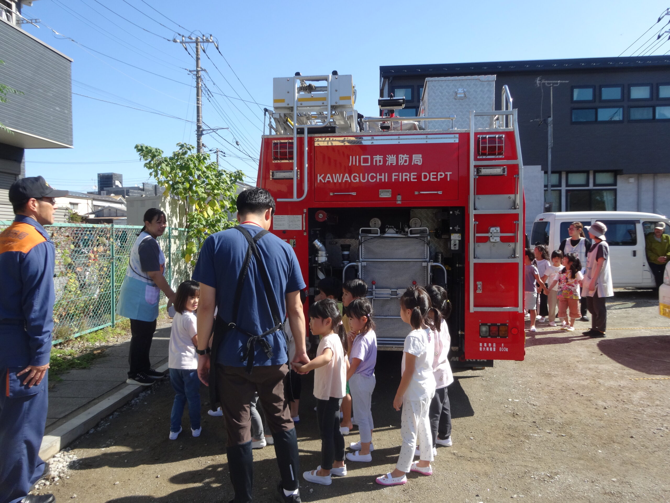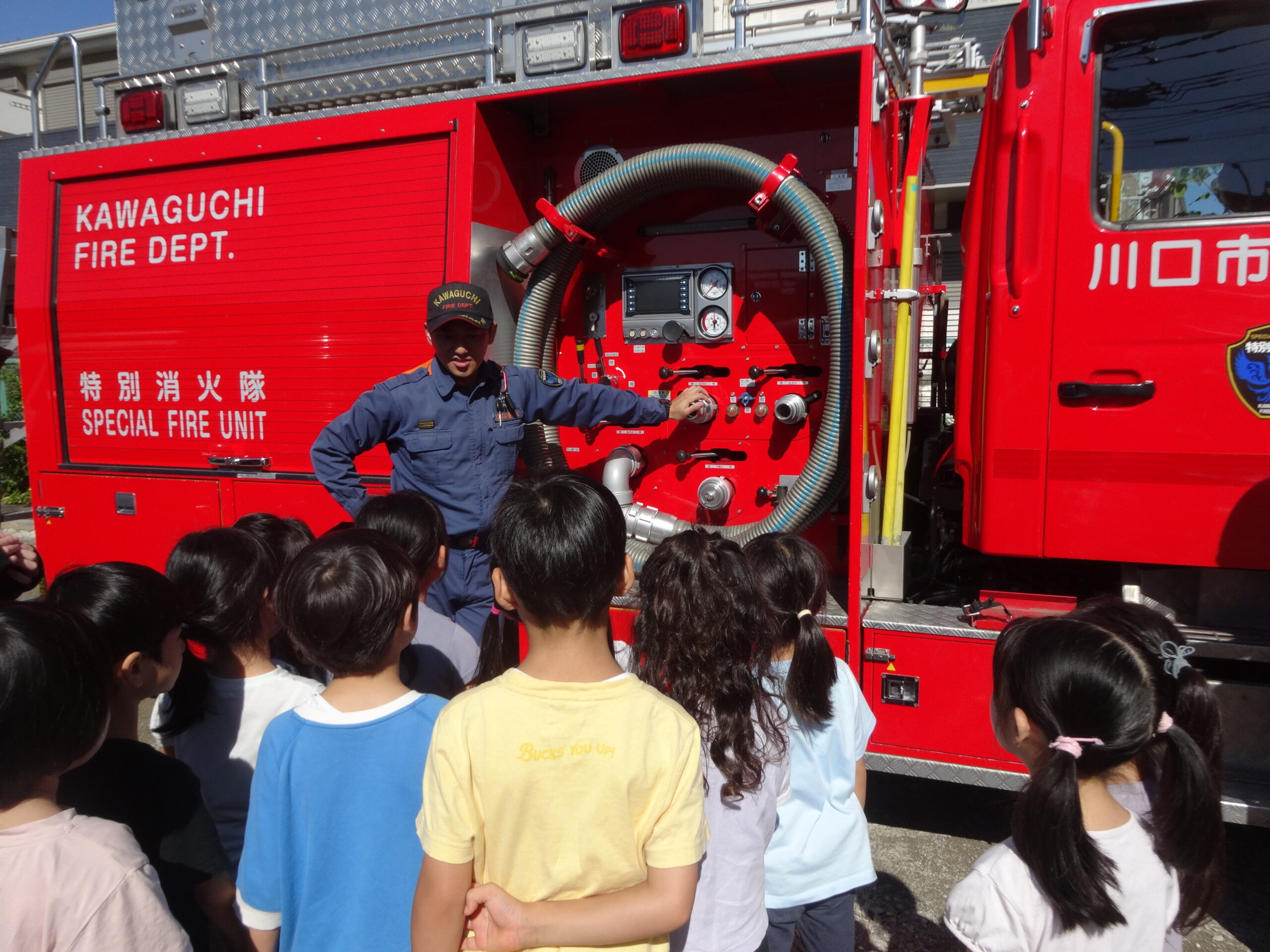 今日は川口市東消防署の協力をえて消防訓練をおこないました。