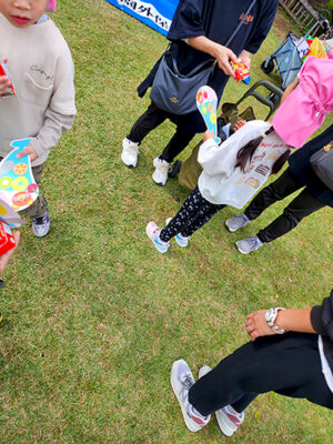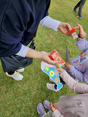 全部集まったら、ゴールの先生のところでジュースを貰えます。
