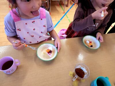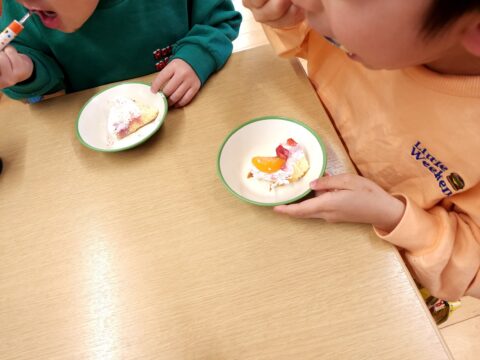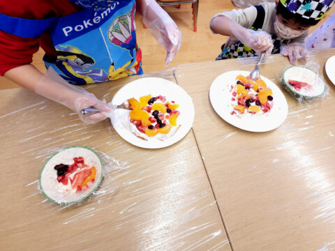 午後からはさくら組さんによるクッキングでクリスマスケーキを作りました。