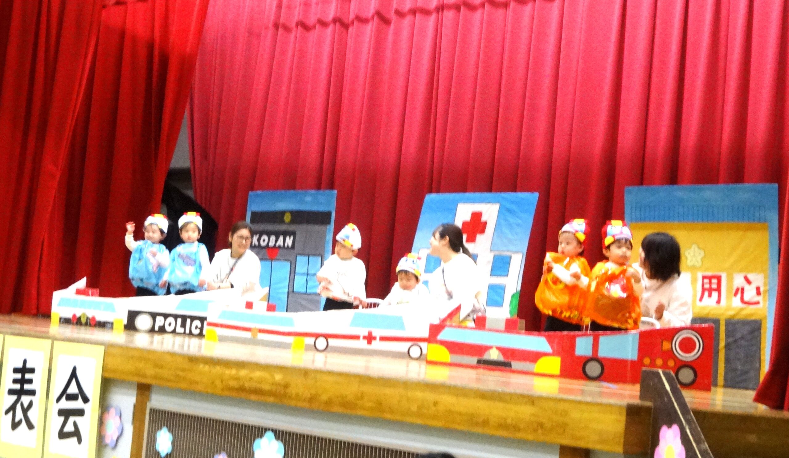 幼児クラスの英語の発表の後はみんと組(0歳児クラス)のうた遊び「はたらくくるま」