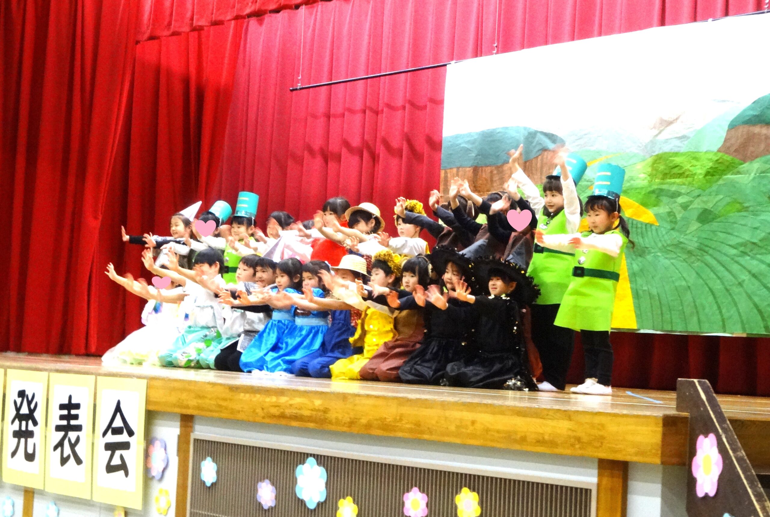 長いセリフを上手に言えることができたさくら組さんと、それに負けない位上手に演じることができたひまわり組さん。2クラス合同で素敵な劇になりました。