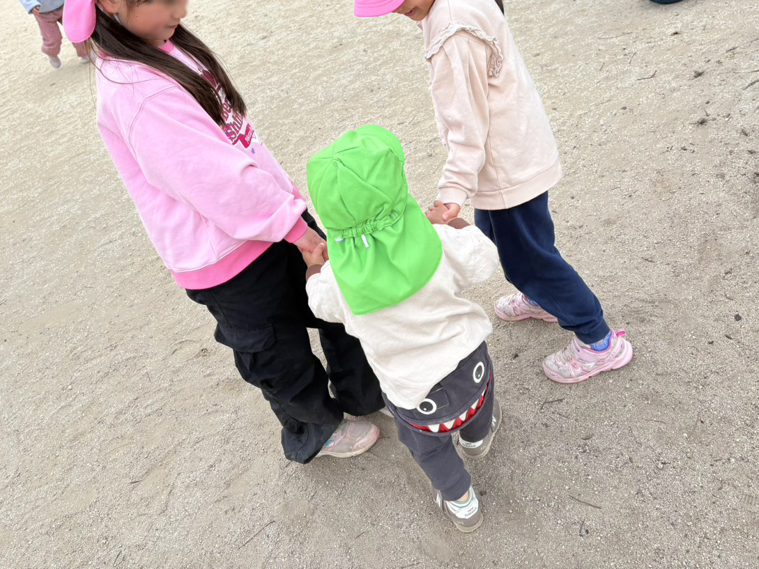 お兄さんお姉さんたちはお外ではあまり交流のない下のクラスの子と手を繋げて満足♪