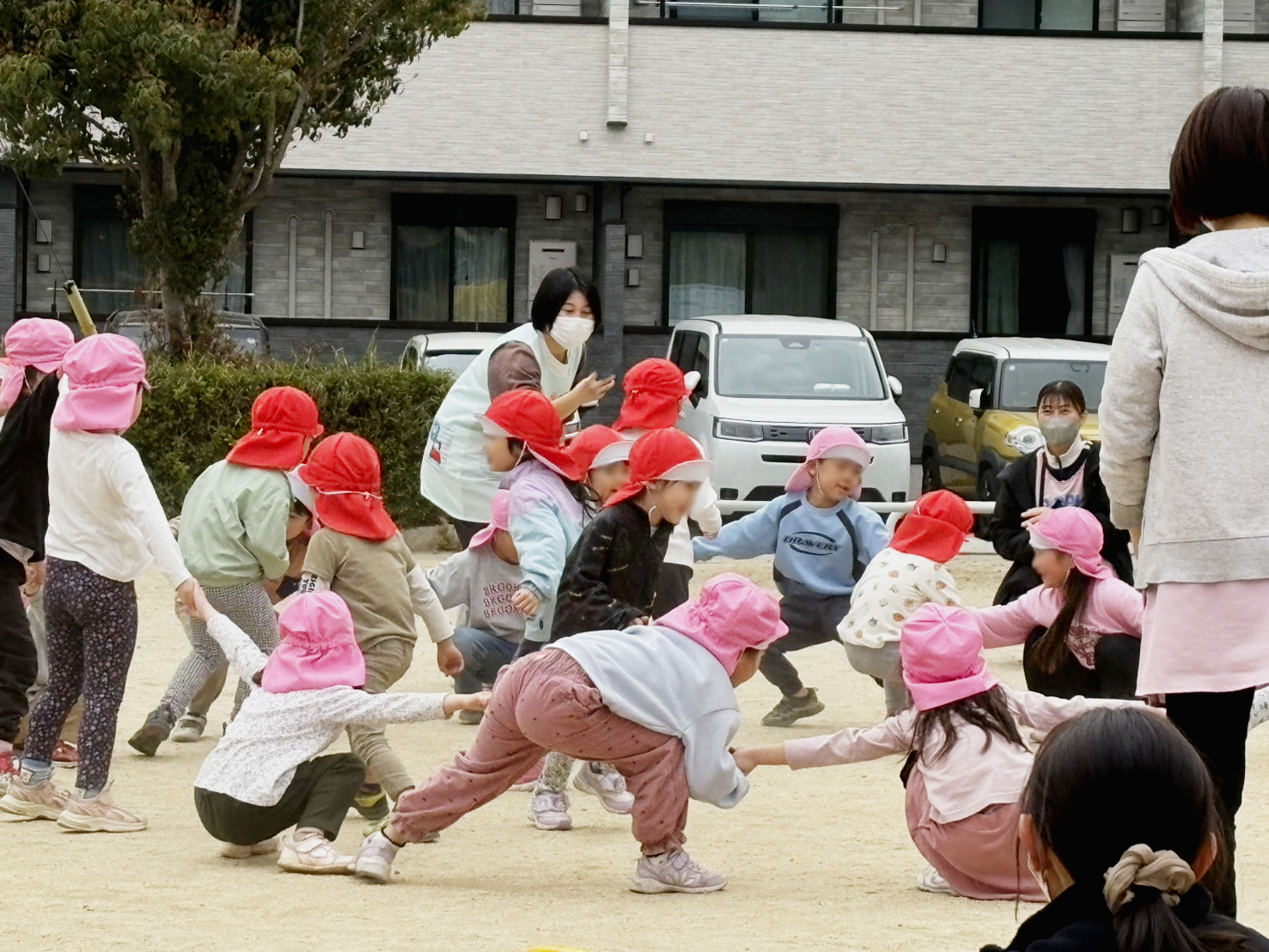 手を繋いで円を作って、中に入ったクラスの子たちが出られないように阻止します。